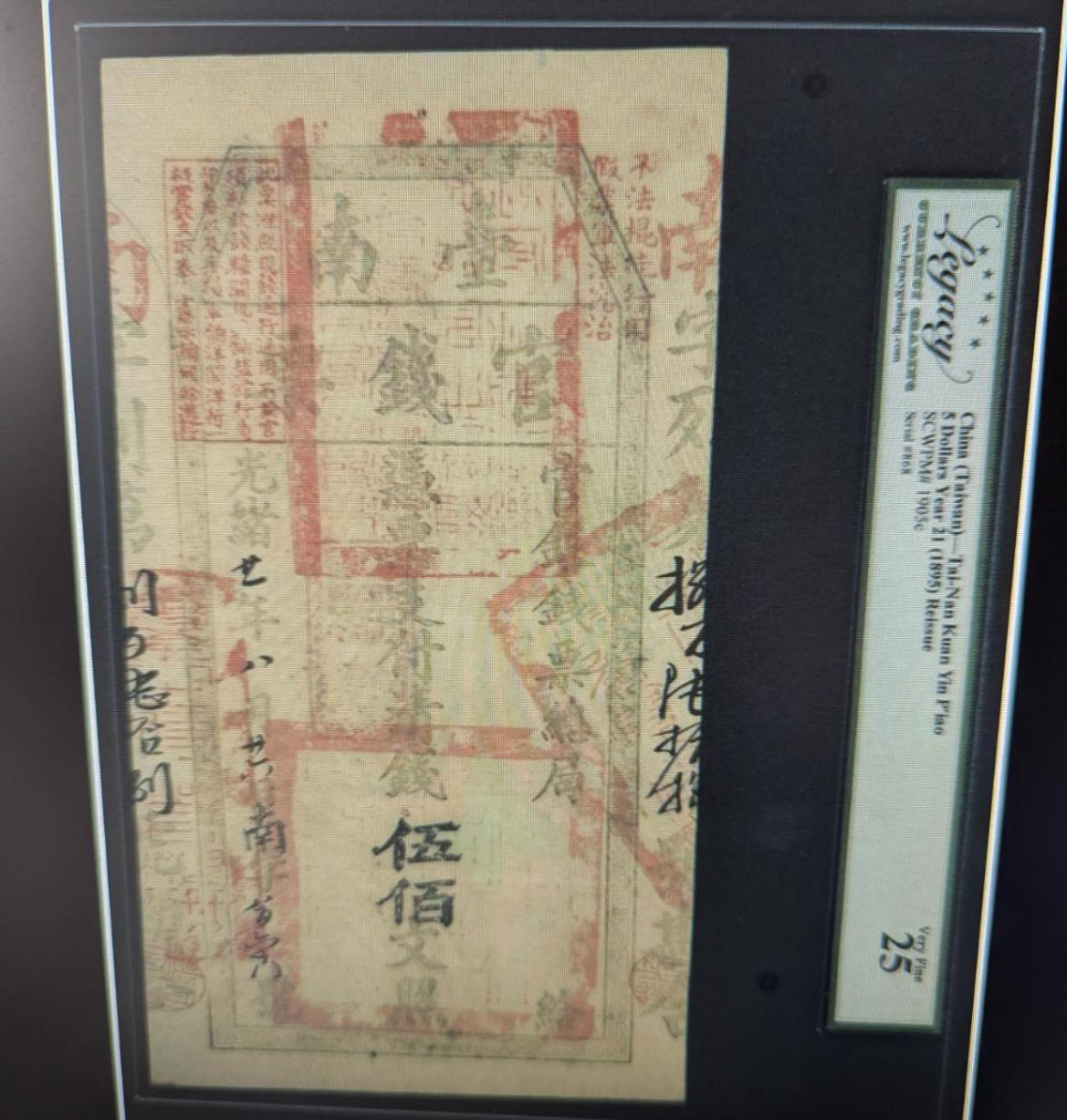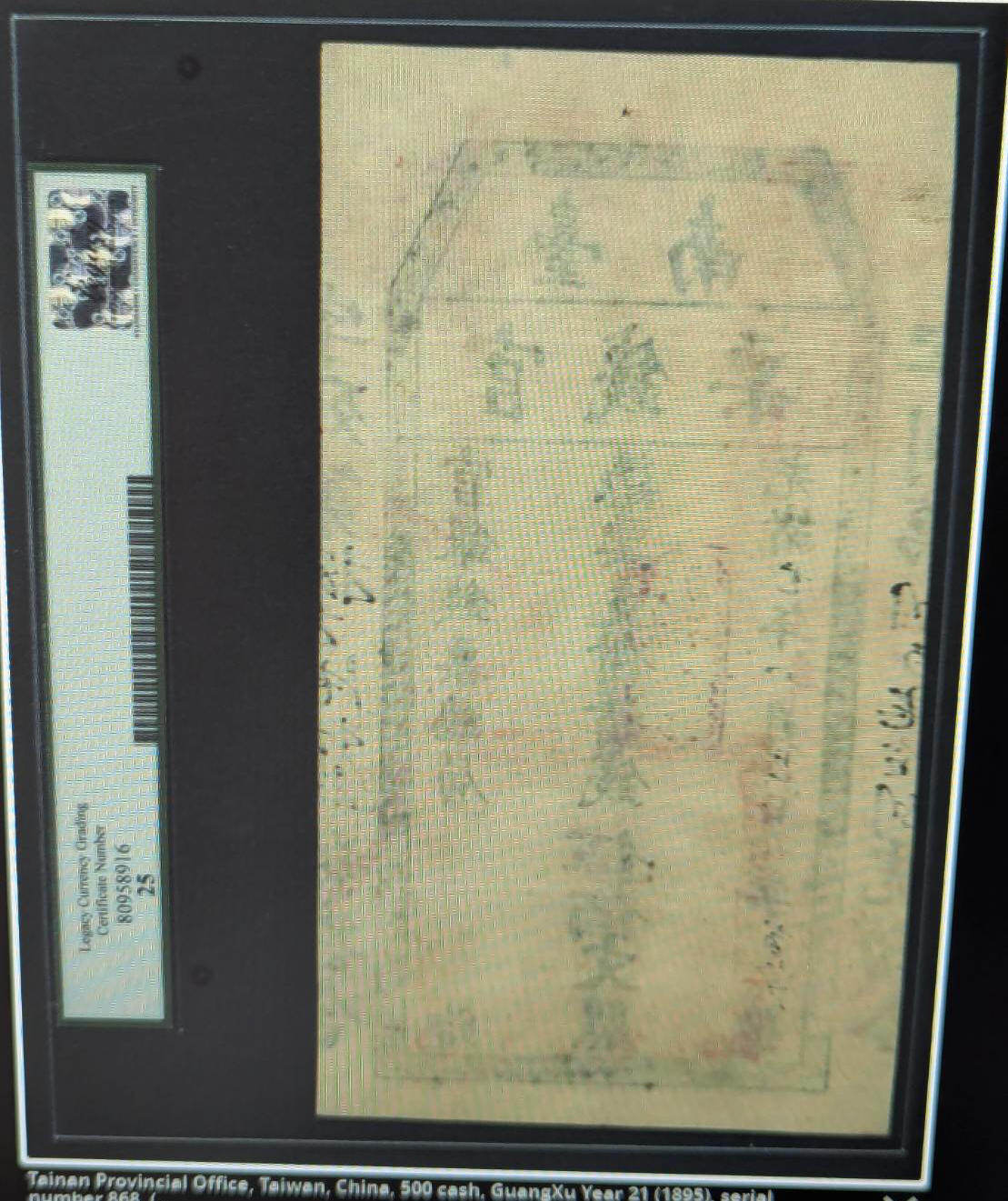 台南官錢票伍佰文,發行於光緒21年(1895)八月廿六日至九月四日止,僅流通